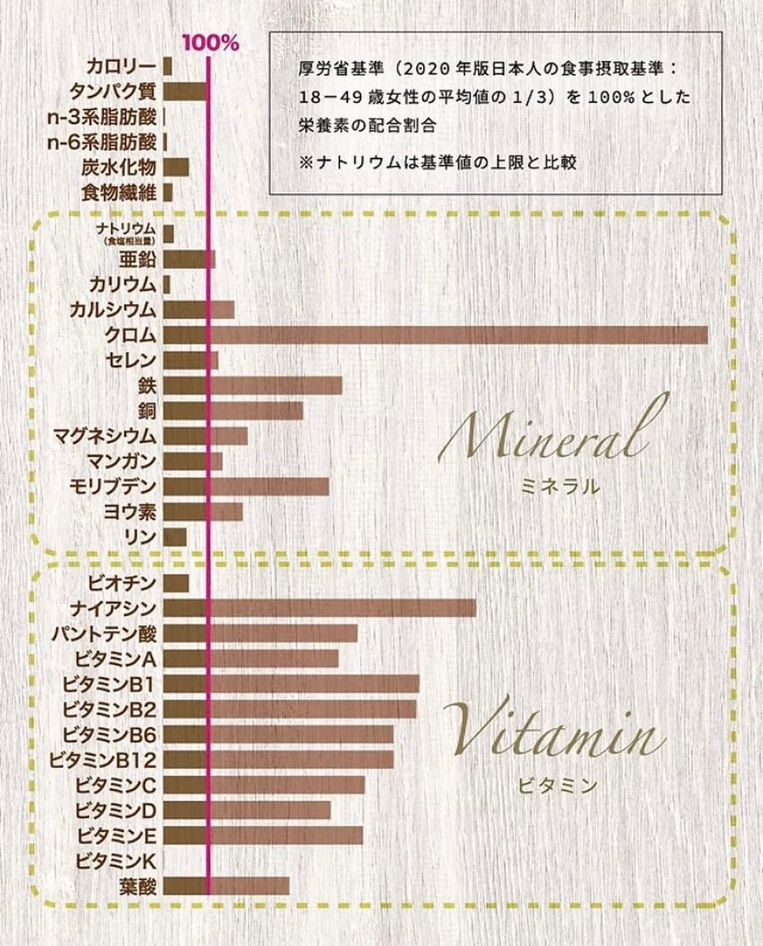 『Welf Lily』は、女性が1食に必要な栄養素を配合した、女性のための完全栄養食です。日々の生活で不足してしまいがちな栄養素を、管理栄養士の監修のもと、厚生労働省「日本人の食事摂取基準(2020年版)」に基づき配合しました。
