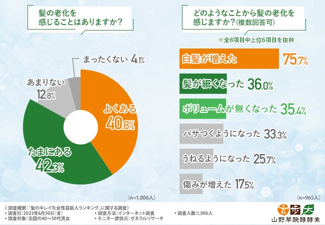 ここまでの調査で、8割以上の方が髪の老化を感じていることが明らかになりました。