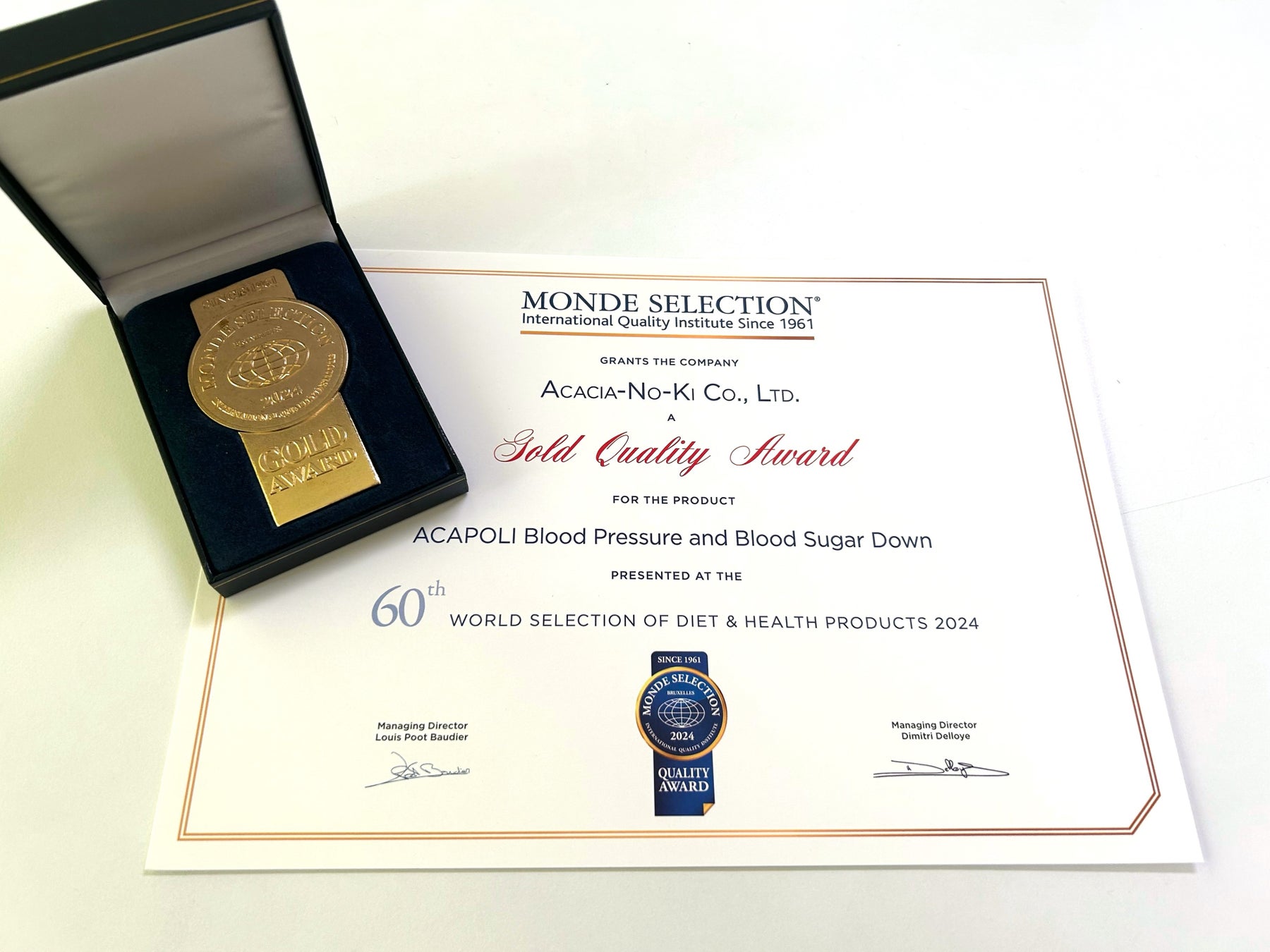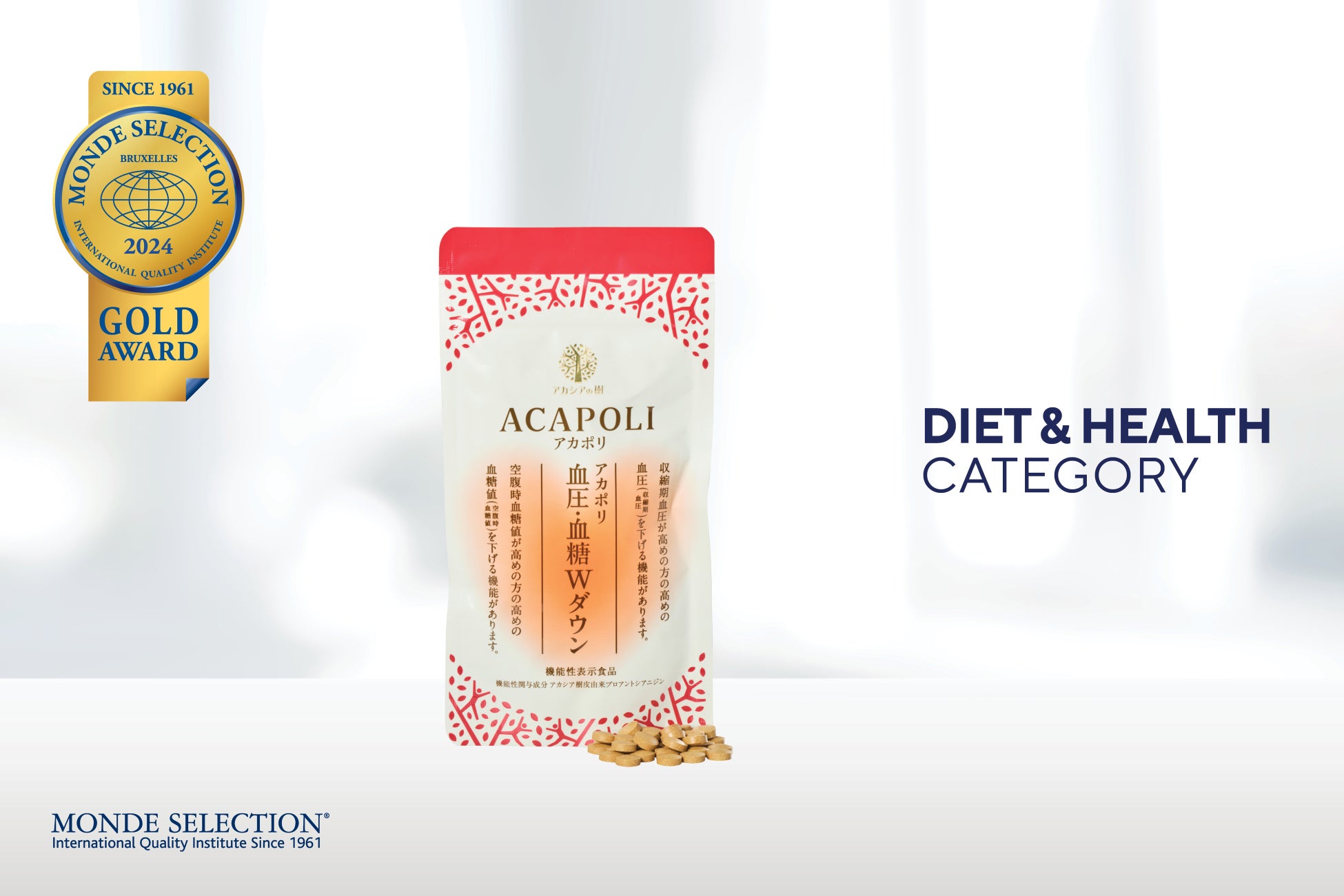 株式会社アカシアの樹(広島県 廿日市市)が販売する日本初※1のサプリ『アカポリ血圧・血糖Wダウン』は、国際的な食品品評会であるモンドセレクション2024に初出品し、栄誉ある優秀品質金賞を受賞しました。
