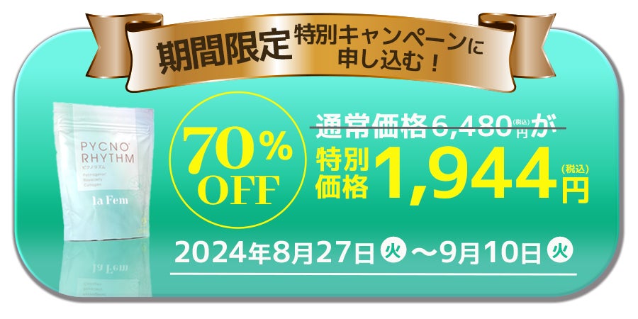 現在la Femでは、通常6,480円(税込)のピクノリズムが、70%OFFの1,944円(税込)で購入が可能です。【2024年9月10日】までの期間限定キャンペーンなので、気になる方はチェックしてみてください”
