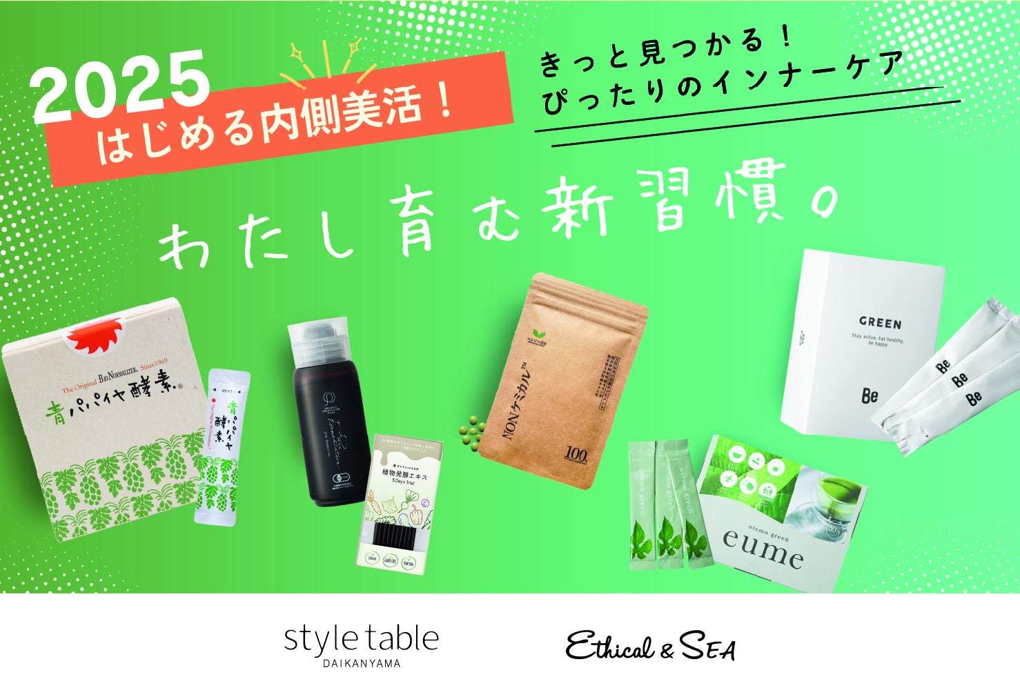 株式会社フラッグ(東京都港区 代表取締役:吹上直子)が運営するエシカルセレクトショップブランド「style table」(スタイルテーブル)、「Ethical&SEA」(エシカルシー)は、2025年1月1日(水)~1月15日(水)まで、「New Me 2025! はじめる内側美活!わたし育む習慣」フェアを開催いたします。