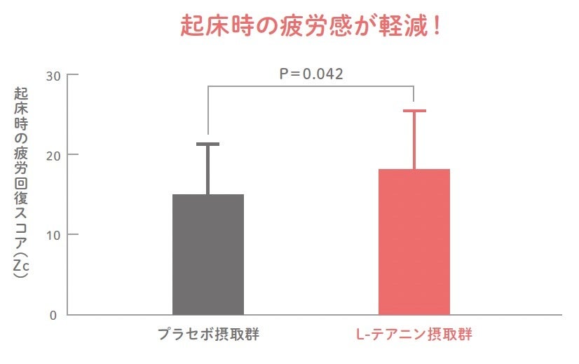 本商品には、L-テアニンが含まれます。L-テアニンとは緑茶に含まれる天然のアミノ酸で、「機能性表示成分」として夜間の良質な睡眠(起床時の疲労感や眠気を軽減)をサポートすることが報告されています。また、L-テアニンには、一過性の作業にともなうストレスをやわらげることが報告されています。【届出番号 J226】