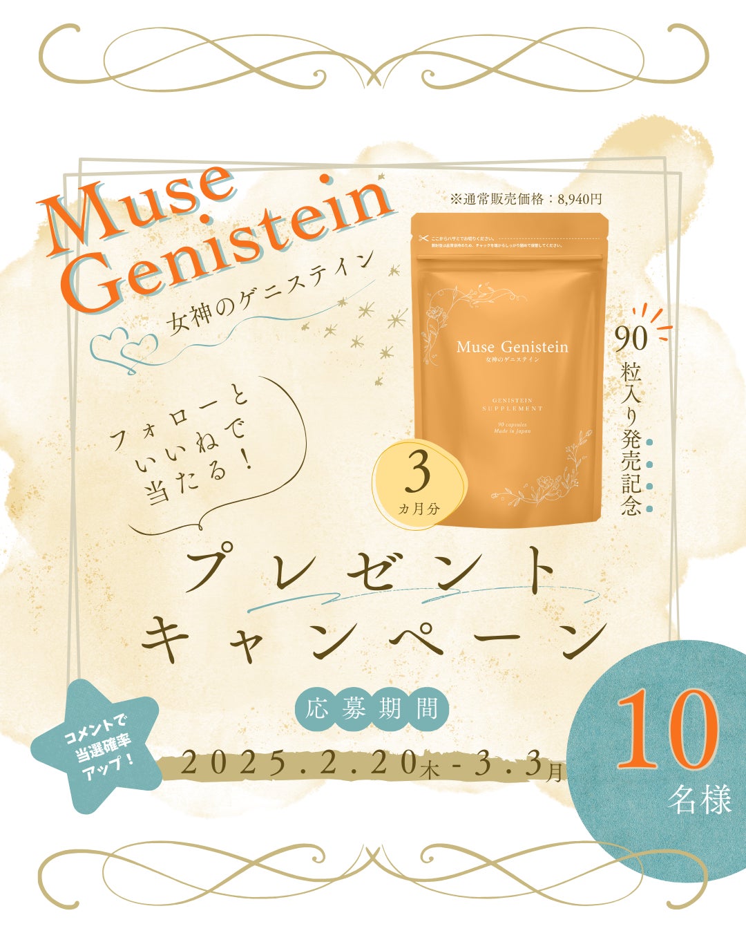 ≪女神のゲニステイン サプリメント3ヶ月分≫ を 各SNS10名様(合計20名様)にプレゼント