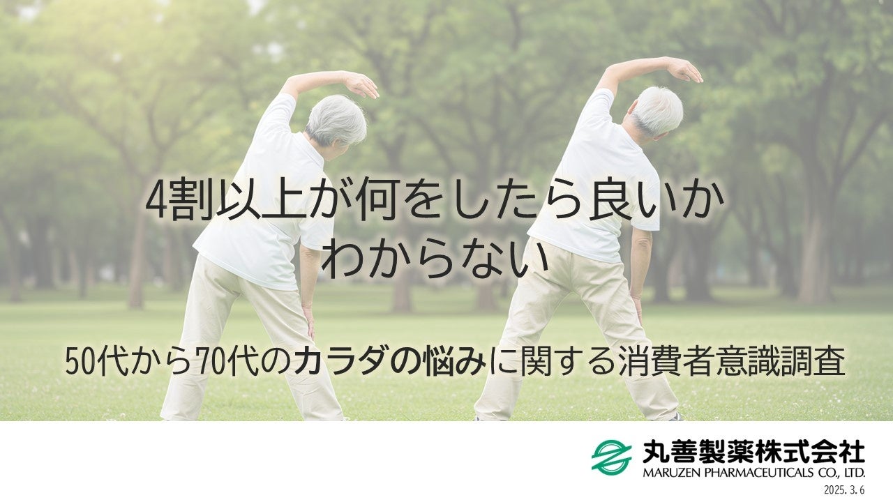 健康食品や化粧品の原料となる天然由来成分を製造する丸善製薬株式会社(広島県尾道市、代表取締役社長:日暮 泰広)は、50代から70代の男女を対象としたインターネットアンケート調査を実施しました。(PRTIMES)
