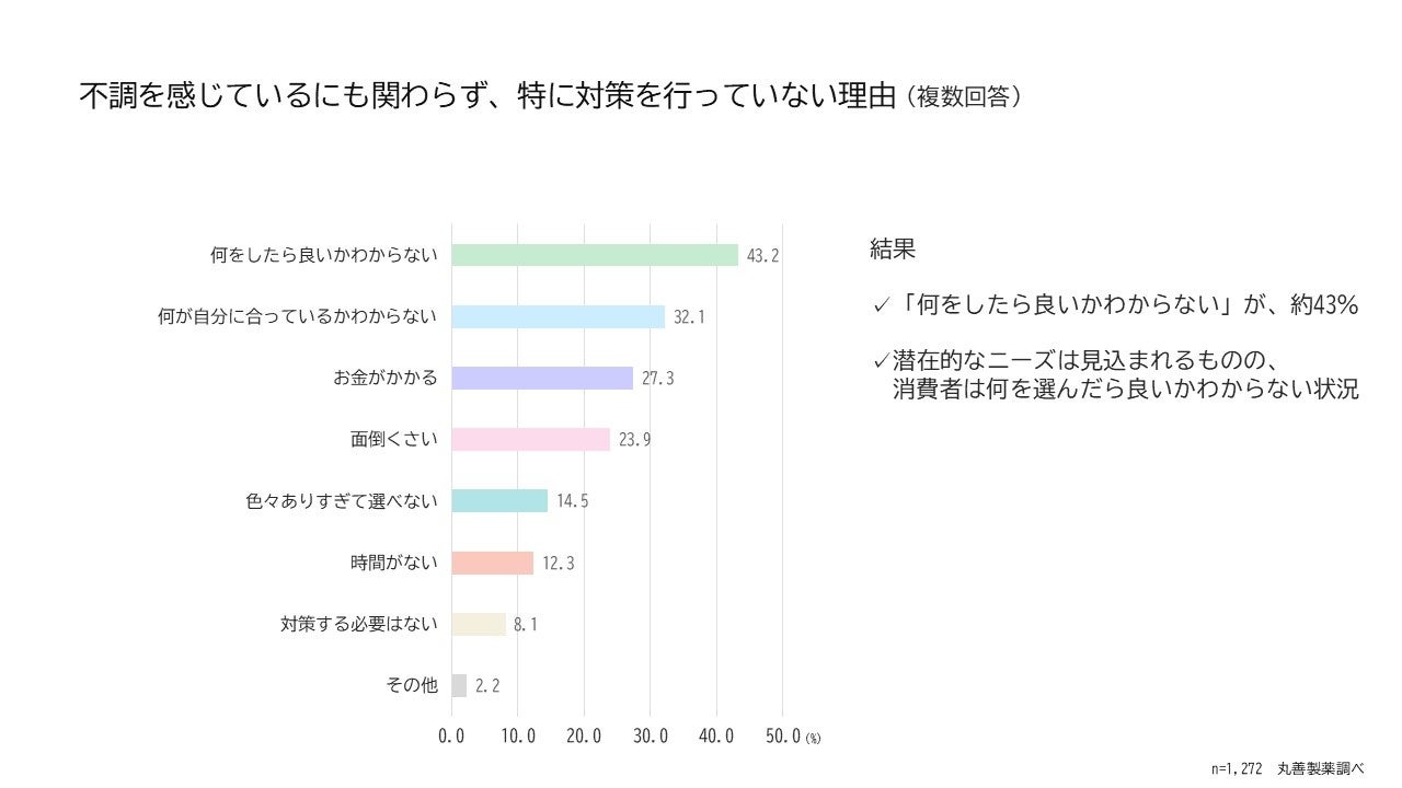 調査3では、不調を感じているものの、対策を行っていない項目を確認しています。