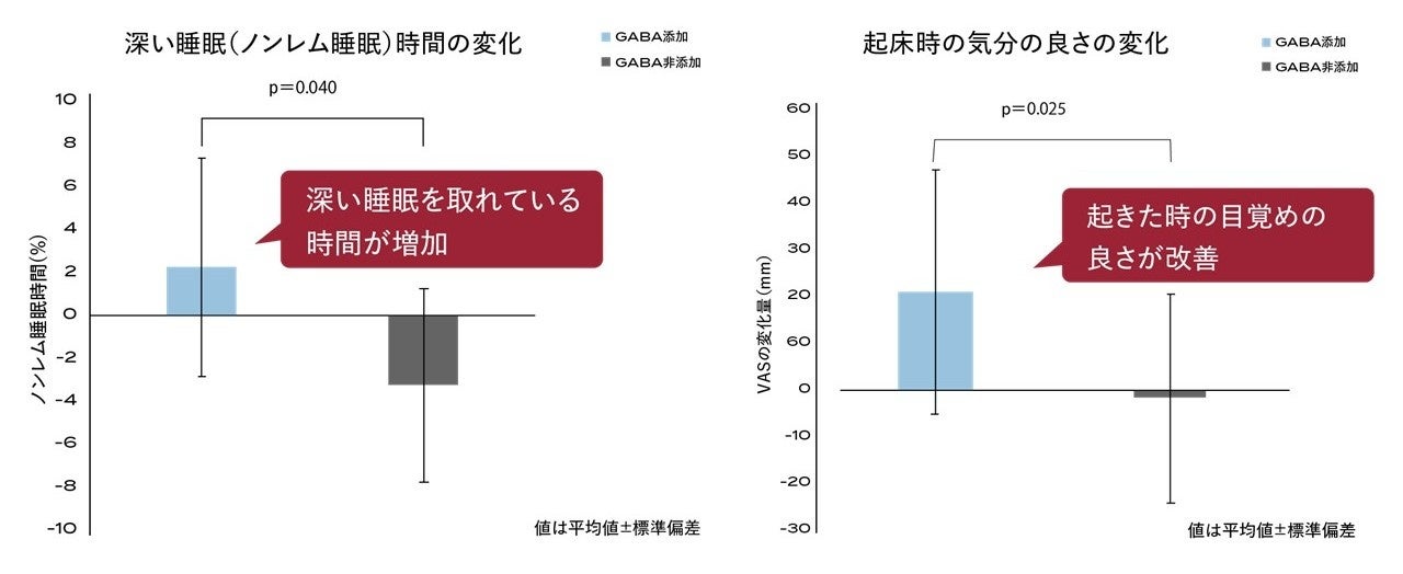GABAを服用すると、7日間で深い睡眠時間が増加し、起床時の気分が改善するという機能が報告されています。※2